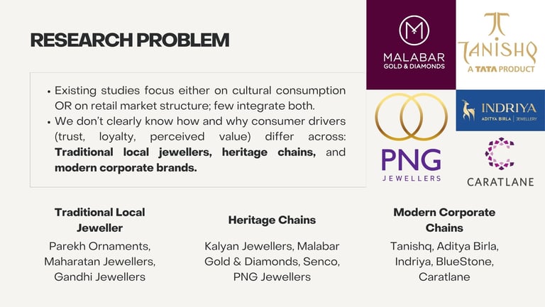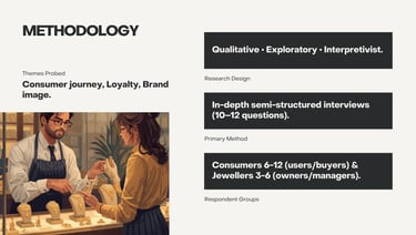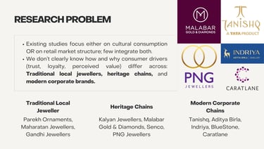 A year-long dissertation on consumer preferences & purchase drivers across the Indian Jewellery Market. Primary research through interviews and FGDs.